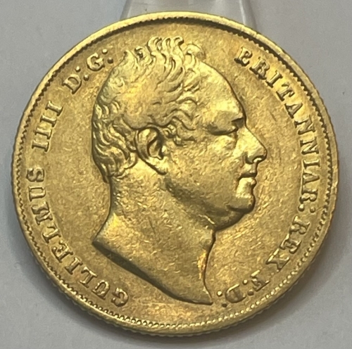 Золотая монета 1 соверен король Вильгельм IV, 1831г., Au 917, 7,928г.