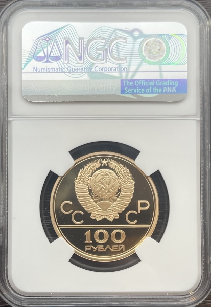 Золотая монета 100 рублей "Гребной канал в Крылатском" 1978г в слабе NGC Proof 69 ULTRA CAMEO