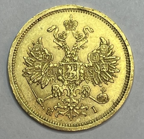 Золотая монета 5 рублей 1877г. СПБ-НI