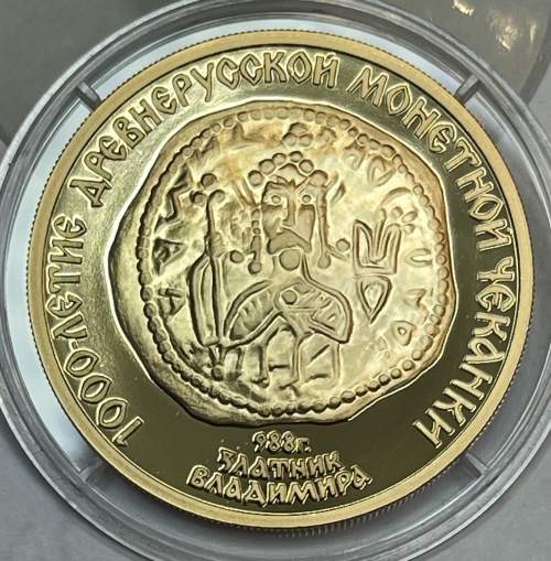 Золотая монета 100 рублей "Златник Владимира 988г." 15,55 грамм 1988 год, Au 900, ММД