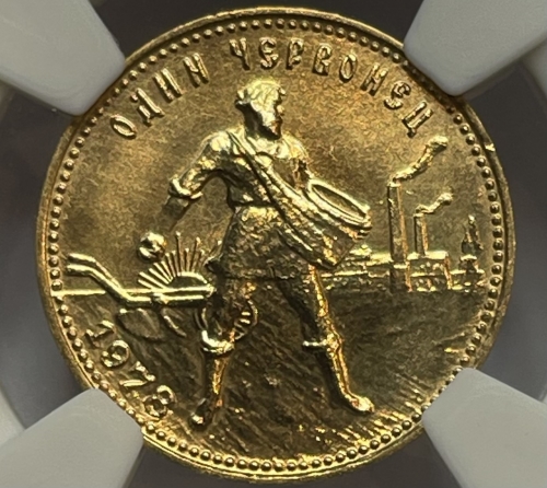 Золотая монета Червонец Сеятель 1978г., в слабе NGS MS 67