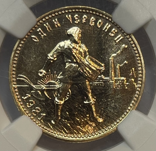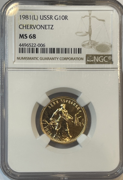 Золотая монета Червонец Сеятель 1981г. ЛМД в слабе NGC MS 68