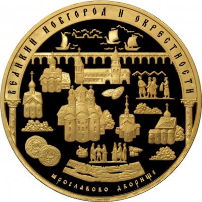 Золотая монета "Исторические памятники Великого Новгорода и окрестностей" 10000 рублей 2009 год, Великий Новгород и окрестности