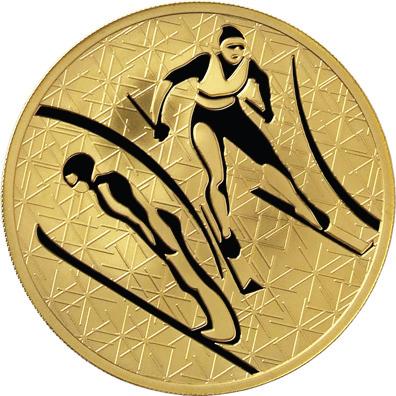 Золотая монета "Лыжное двоеборье", 200 рублей, 2010 год